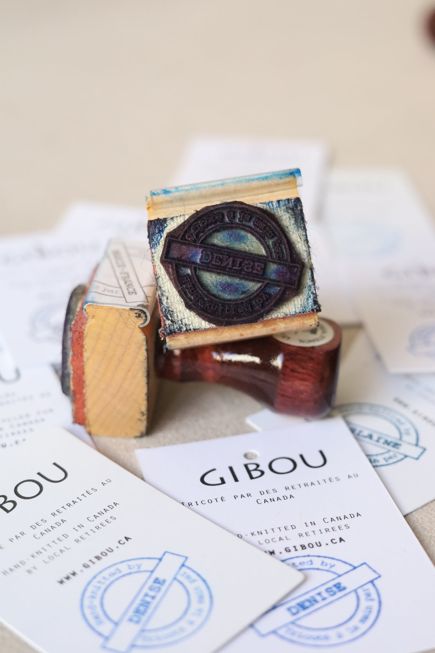 Et nous prenons le temps d'indiquer sur chacune des étiquettes de produits qui a tricoté votre item. Visitez la section tricotée à la main pour en connaitre davantage sur la personne qui a confectionnée votre produit :)